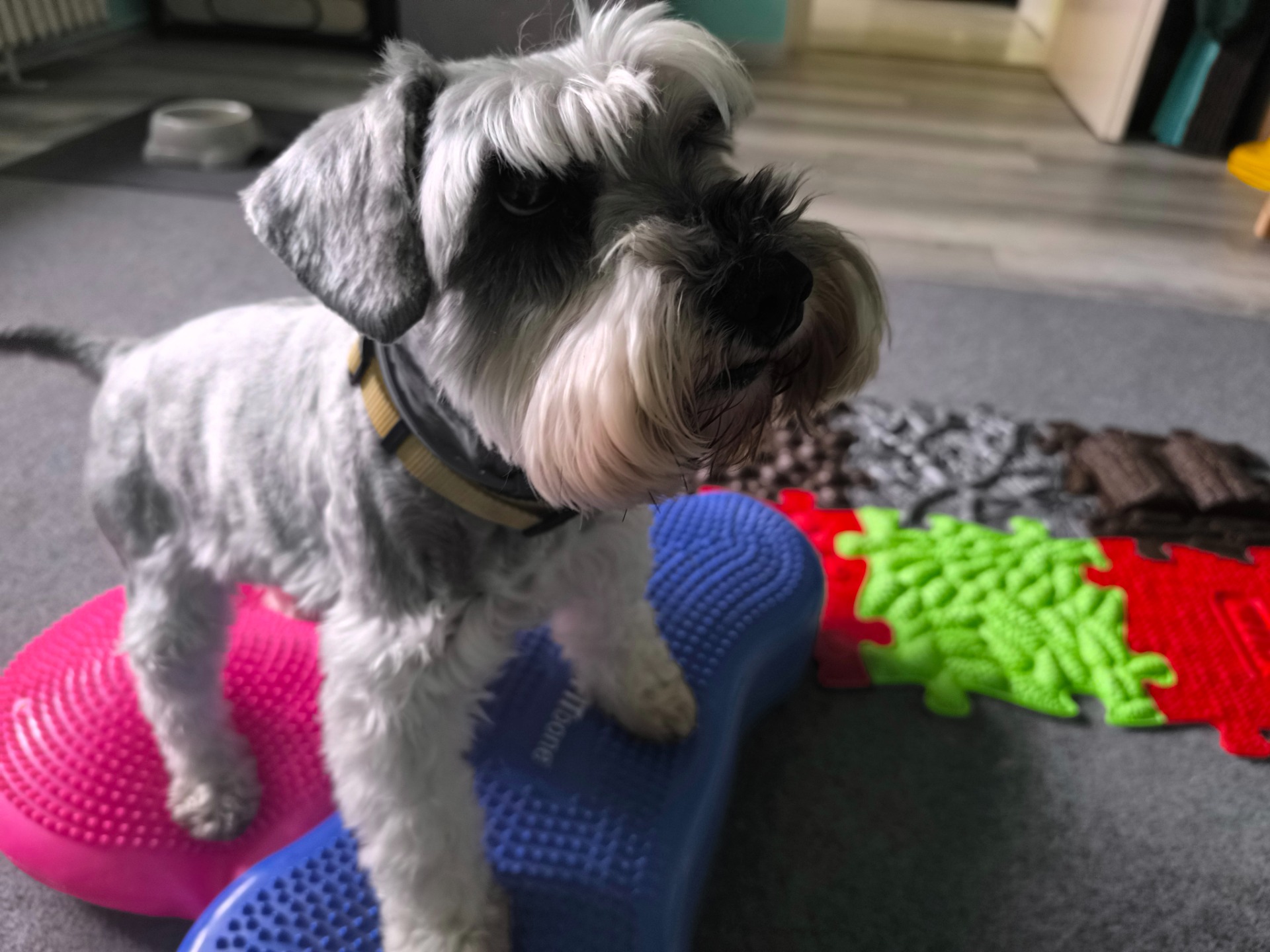 Az órák során egyszerű, biztonságos feladatokat végzünk – sok dicsérettel és motivációval –, hogy a kutya szívesen mozogjon, és aktívan, boldogan tölthesse nyugdíjas éveit.